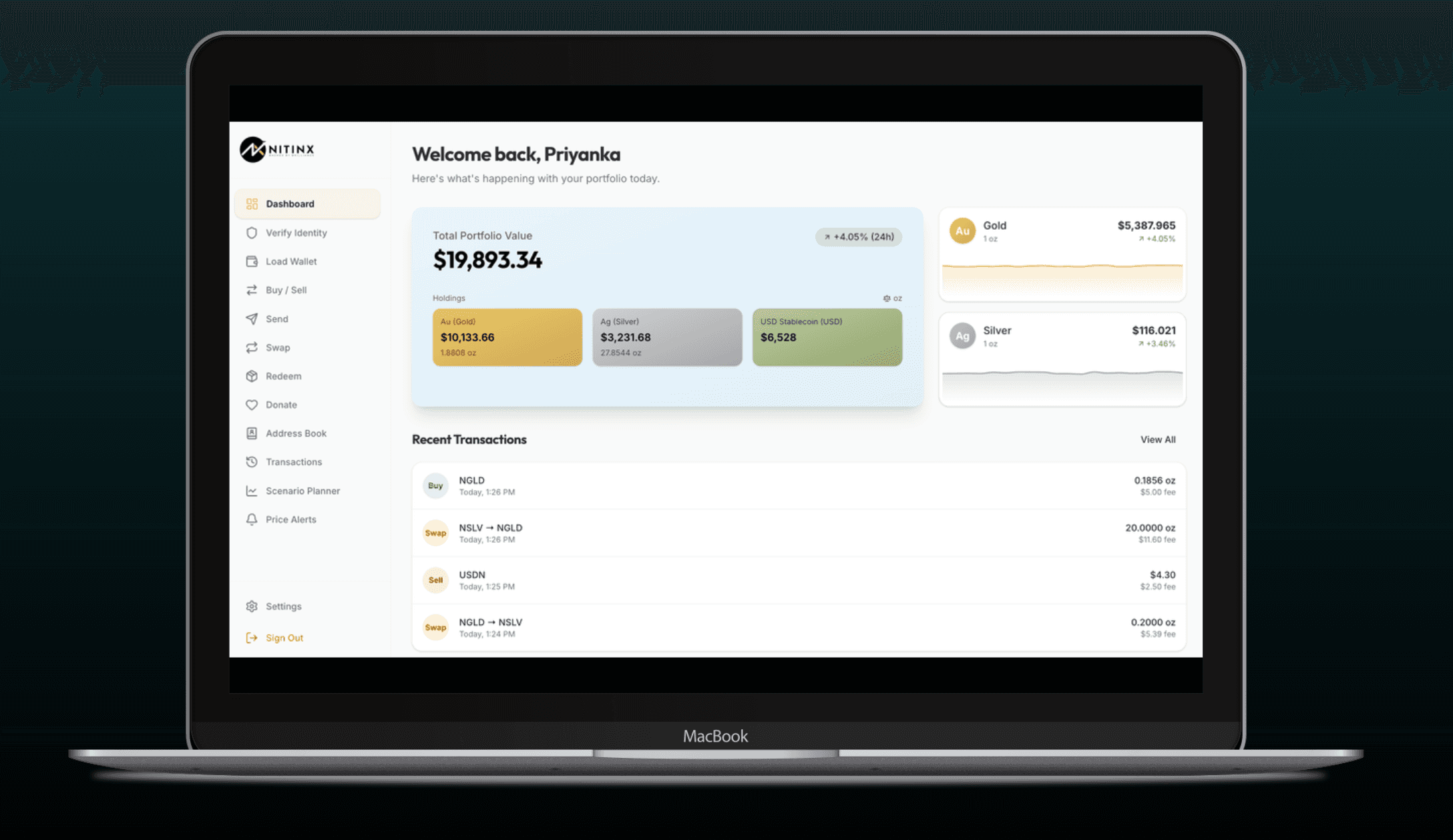 NitinX offers a seamless, secure, institutional-grade access to gold and silver, settled instantly via our native USD stablecoin rail.